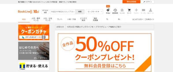 電子書籍サービスの中でも最大手のebookjapanは、常にお得なキャンペーンを実施しており、お得に漫画を読むことが可能です。