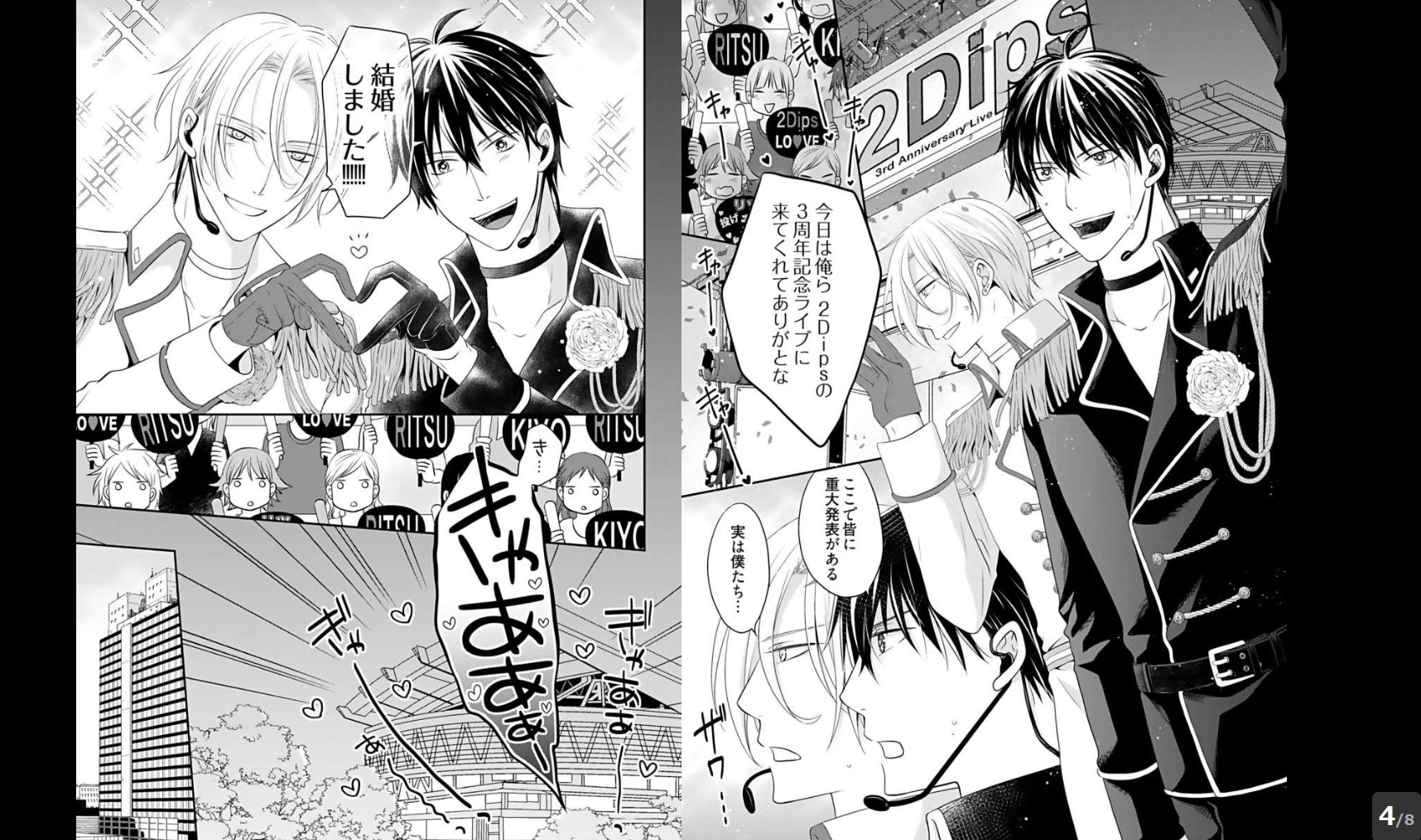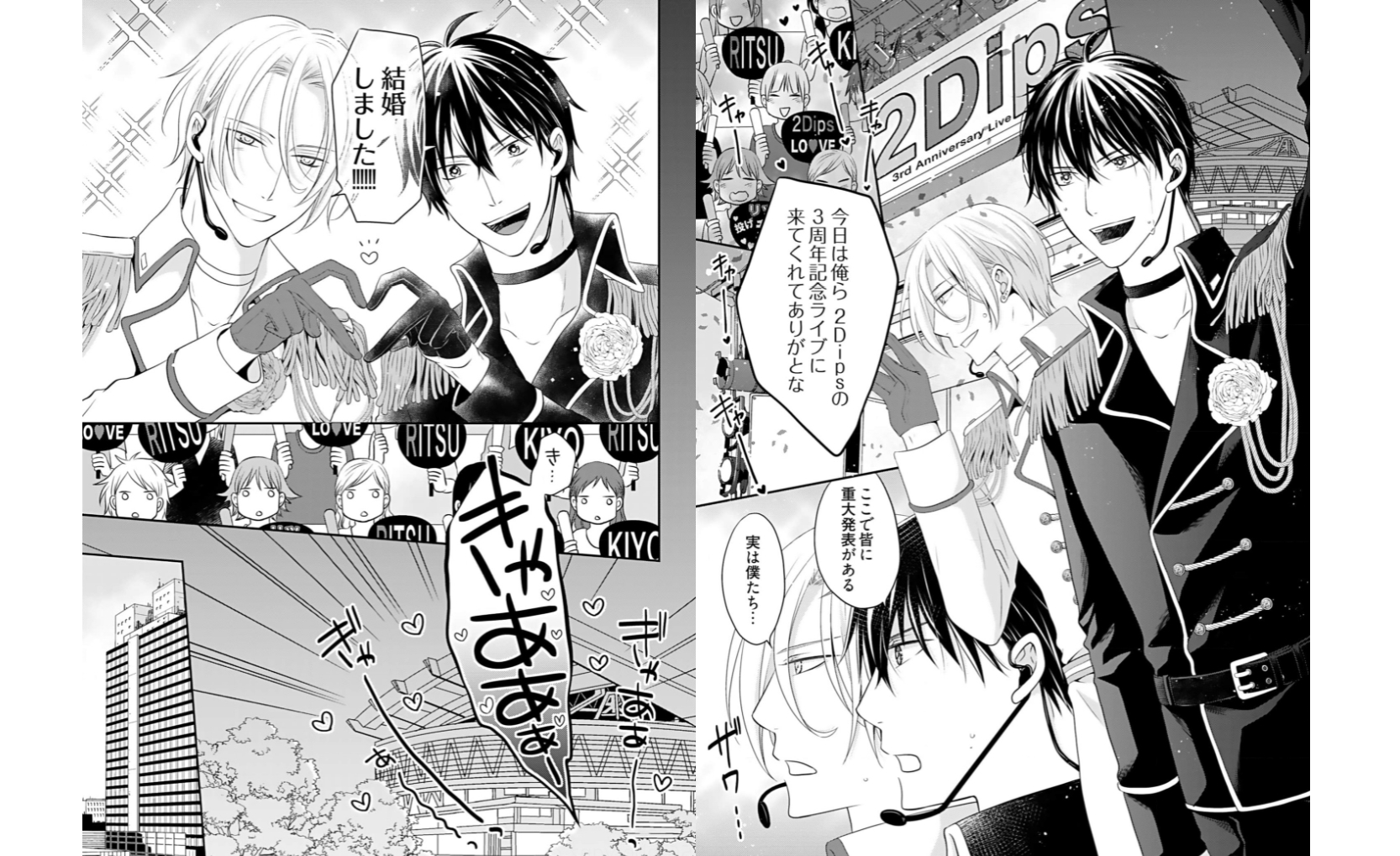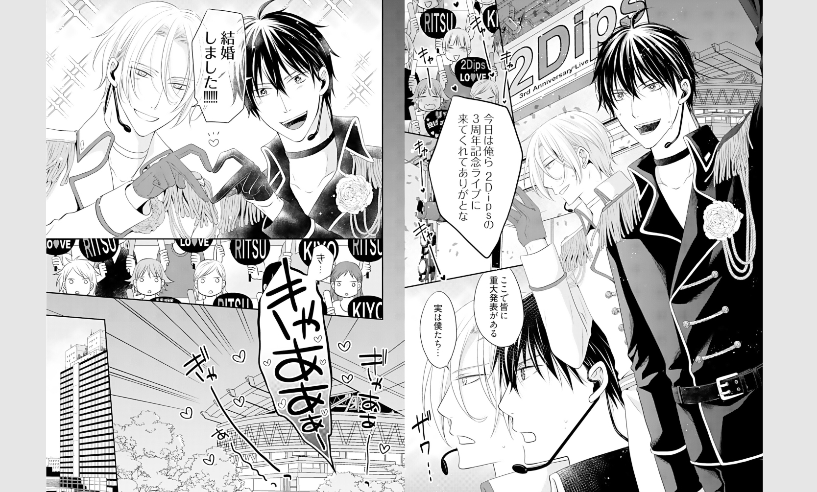 時はアイドル戦国時代―――生き抜くためには【結婚】するしかない!!?? カッコいいお兄さんキャラで人気のキヨと、爽やか王子様として支持を得るリツ。そんな二人で結成された『2Dips』は、売れっ子街道ばく進中のアイドルユニットだ。ある日、事務所社長から『夫夫(ふうふ)アイドル』として売り出すことを宣言された二人は、ビジネス結婚するハメに! ところがそこには大きな問題が―――キヨとリツは犬猿の仲だったのだ。「結婚させられたのまだ根に持ってんのか?」「それはリツもだろーが!」納得のいかないまま、偽装夫夫アイドル生活が始まって…?
