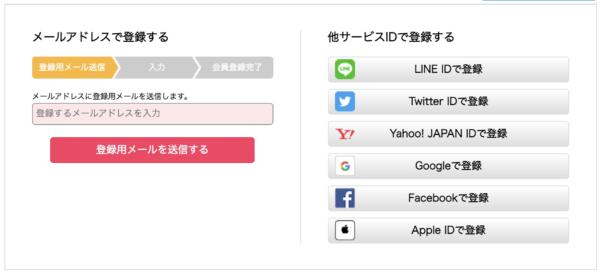 ①GoogleアカウントやYahoo!japanIDのいづれかで登録