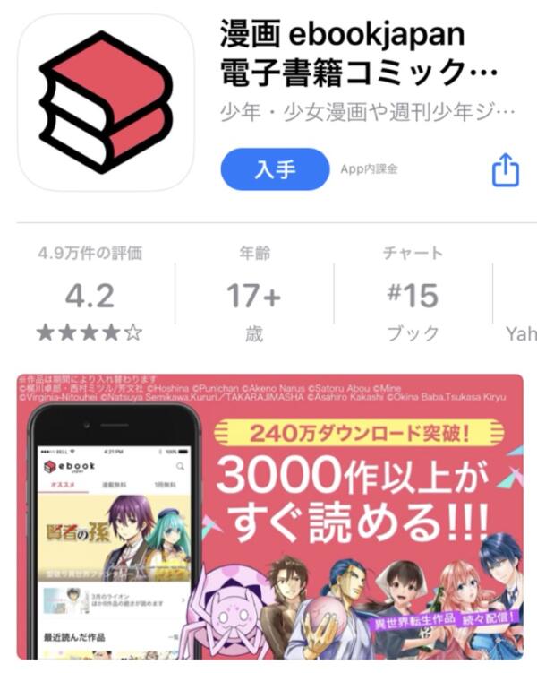 6冊まで半額で読めてアプリもある「ebookJapan」
