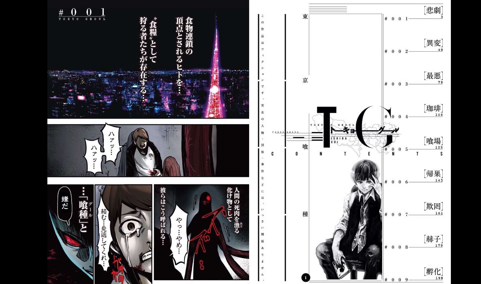 “東京”には、或るひとつの「絶望」が潜む…。群衆に紛れ、人間を狩り、その死肉を喰す怪人、人はそれを「喰種(グール)」と呼ぶ。青年が怪人に邂逅したとき、数奇な運命が廻り始める──!